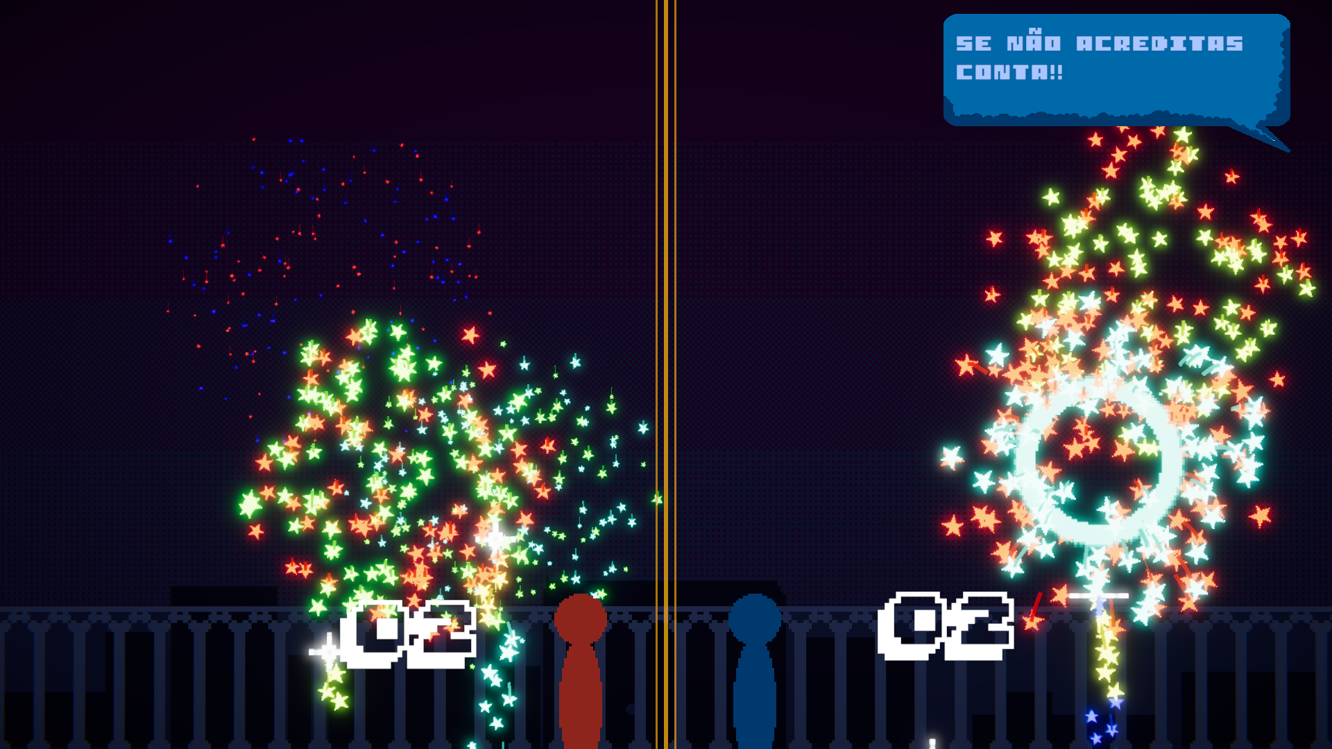 O objetivo de cada jogador é contar o números de fogos de artifício respetivo ao seu lado da tela e efetivamente descobrir se os fogos realmente são mais que "100 explosões" ou se é só propaganda da Câmara.